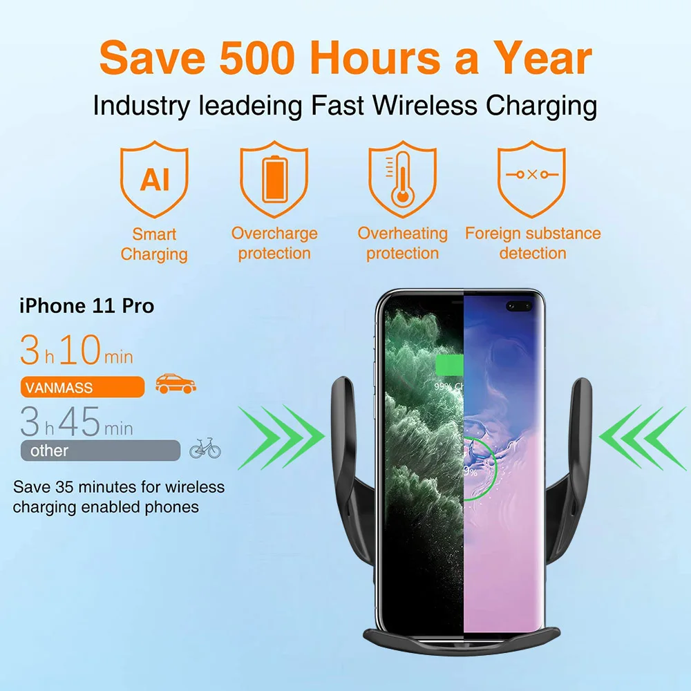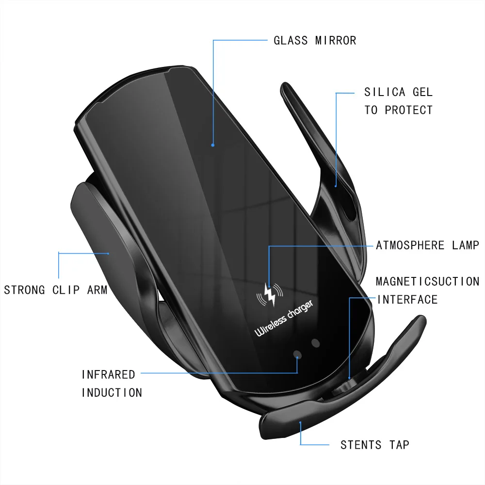 Характеристики продукта:1. Это автомобильное зарядное устройство, поддерживает все модели беспроводной зарядки и большинство мобильных телефонов на рынкеПоддержка до 15 Вт Быстрого режима беспроводной зарядки, 10 Вт и 7,5 обычного режима быстрой зарядки, и 5 Вт стандартной скорости зарядки.2. Не имеет значения, если ваш телефон не поддерживает беспроводную зарядку, посылка содержит 3 вида магнитных разъемов, вы можете заряжать Эти магнитные разъемы.3. Беспроводное Автомобильное зарядное устройство адаптируется к инфракрасной индукционной технологии, оно автоматически открывает руки и плотно удерживает приближающийся телефон, легко вынимать телефон после нажатия кнопки удаления. По сравнению с обычным автомобильным держателем для телефона, автомобильное беспроводное зарядное устройство более удобное и безопасное.4. Вы можете легко использовать его в качестве держателя вентиляционного отверстия, универсальный поворотный шар 360 градусов позволяет свободно поворачивать зарядное устройство на любой угол обзора.