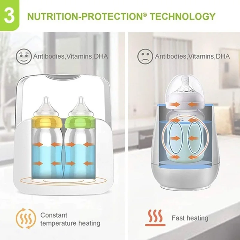 [2 в 1 грелка для бутылок]-Эффективное и эффективное средство для размораживания детского питания и грудного молока. Грелка для бутылочек для грудного молока автоматически отключается через восемь минут и имеет циклическую память, поэтому бутылка каждый раз устанавливает ваш прогревающий предыдущий цикл. Теплое молоко, тепловая еда, формула-регулировка температуры мишени, размораживание молока