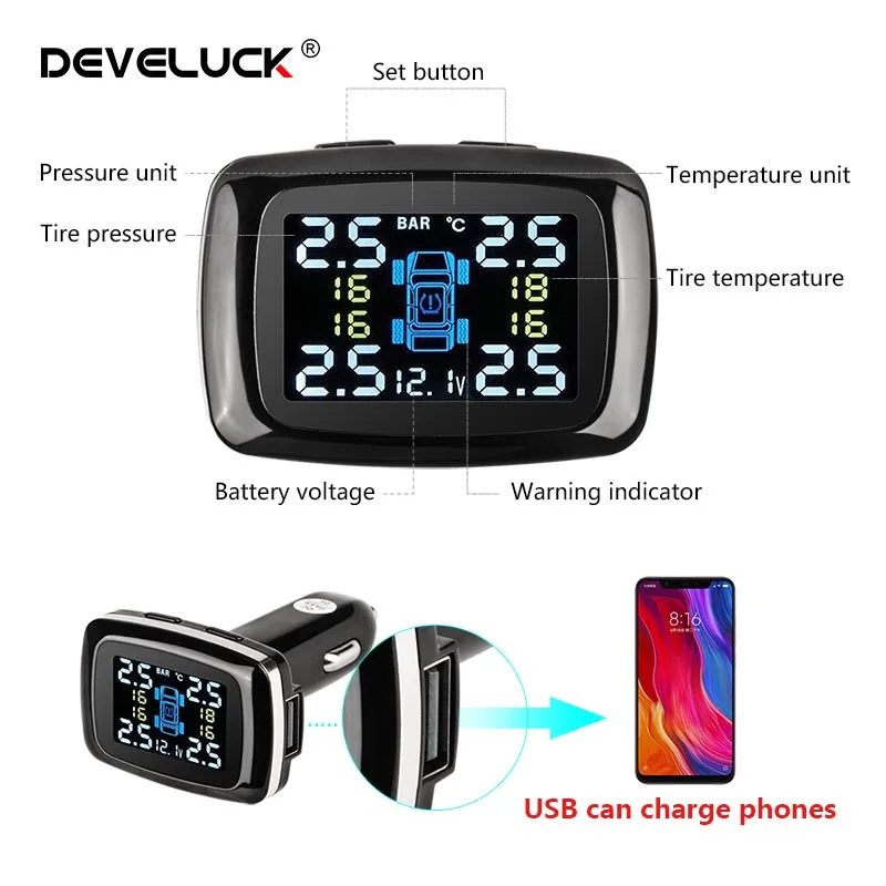 Develuck CIgarette Зажигалка Цифровой TPMS давление в шинах автомобиля