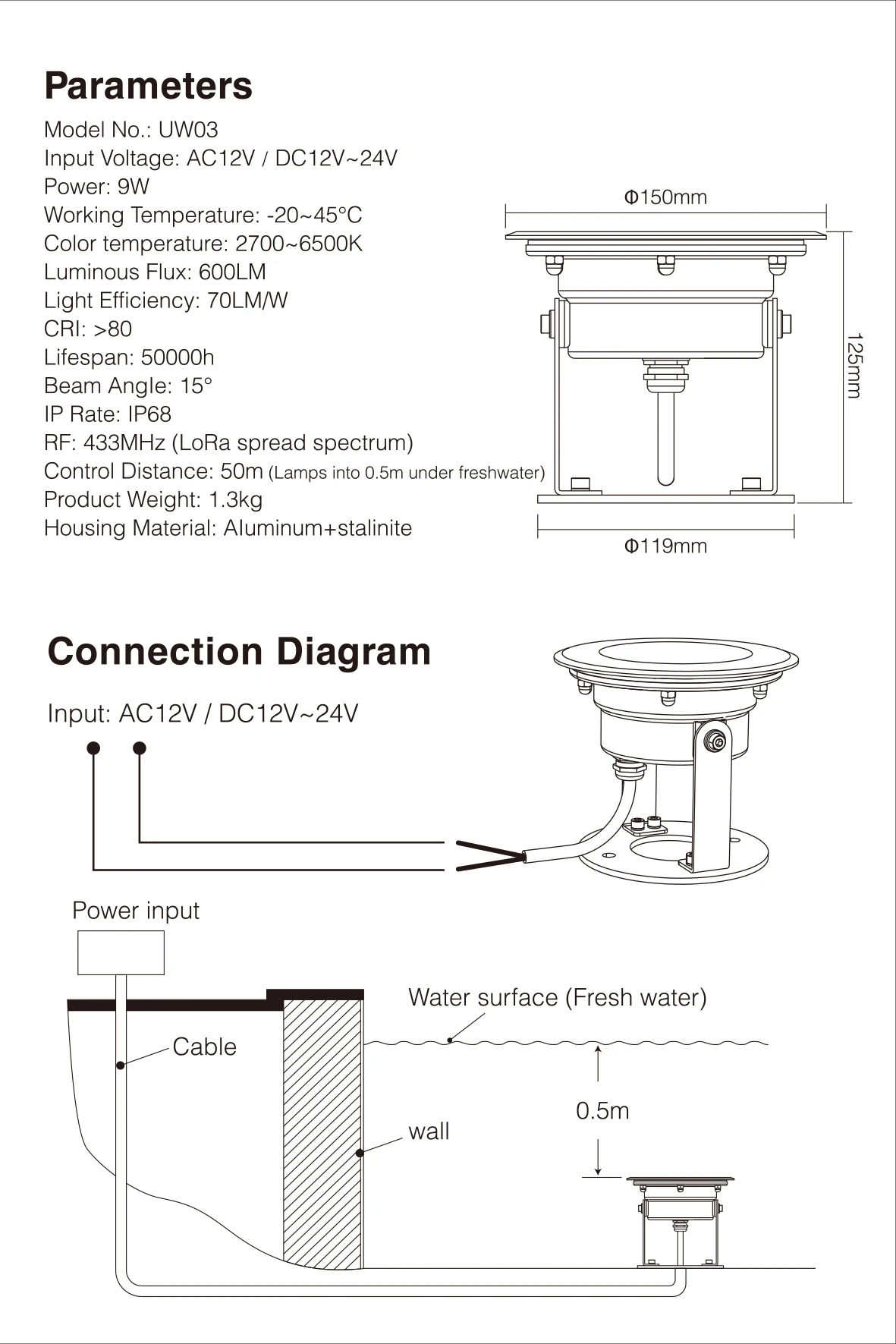Отзывы о Miboxer UW03 9 Вт RGB + CCT светодиодный подводный свет (LoRa 433 МГц) IP68 R433MHz дистанционное