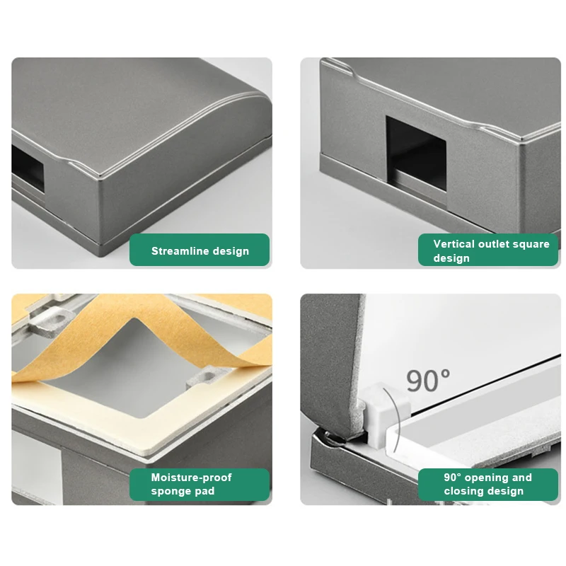 2. Откидная крышка, 90 градусов широкое отверстие, не влияет на использование розетки.