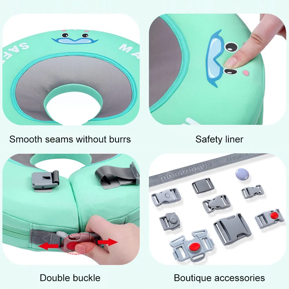 1. Нажмите на край женского рта и откройте защелку 2. Нажмите красную точку до середины 3. Откройте пряжку 4. Гнездо для ребенка 5. Застегните две пряжки отдельно 6. Начните плавать