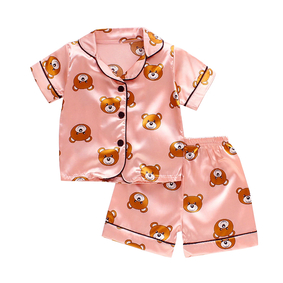 Отзывы о Children Cartoon Bear Two-piece Pajamas Girls Short Sleeve Lapel Top with Button Elastic Waistband Shorts Set | Мать и ребенок