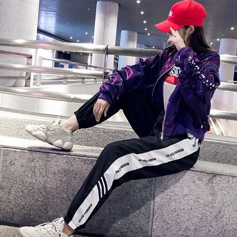 Отзывы о Брюки-султанки женские в Корейском стиле черные полосатые штаны хип-хоп с