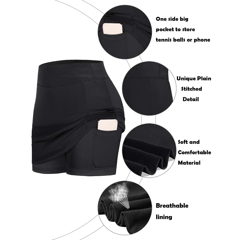 Двухслойные: теннисные юбки со встроенными шортами, обеспечивают безопасность при занятиях спортом и закрывании эластичной талии