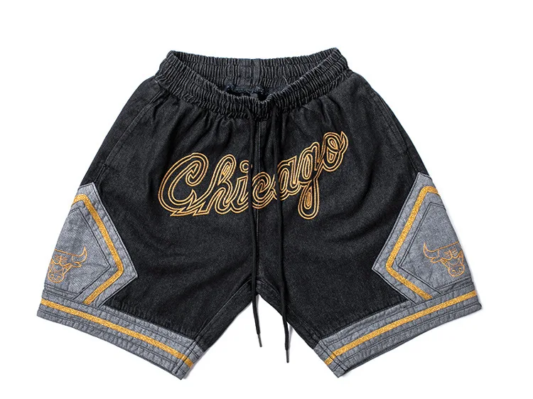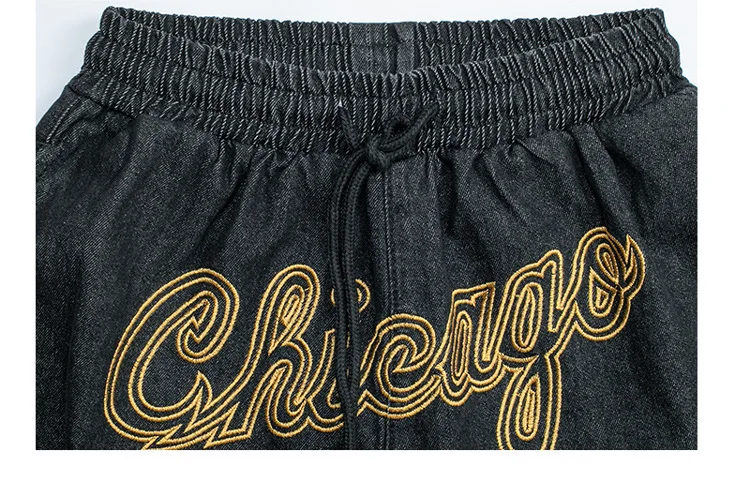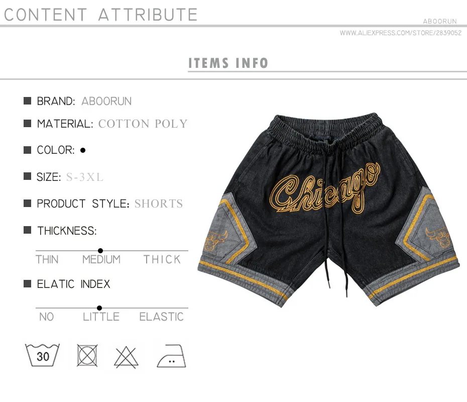 Отзывы о Мужские джинсовые шорты ABOORUN летние в стиле хип-хоп с вышивкой Чикаго завязками