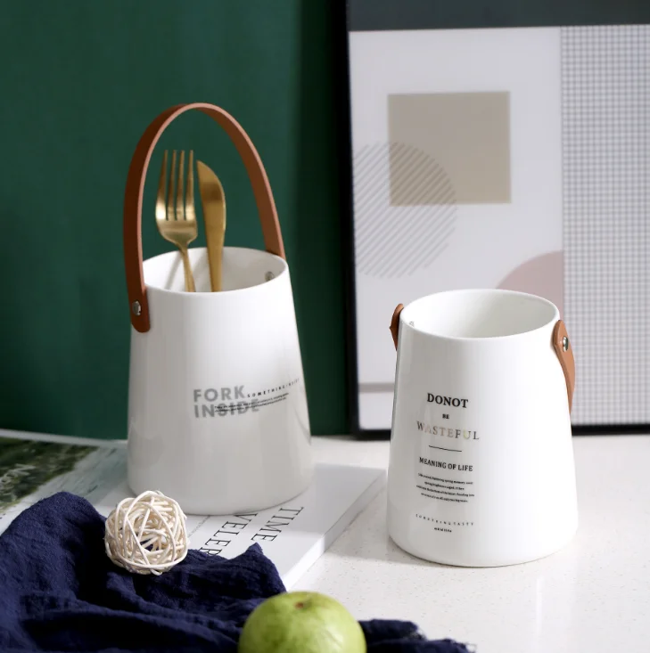 Отзывы о Керамический контейнер для столовых приборов с кожаной ручкой - купить по