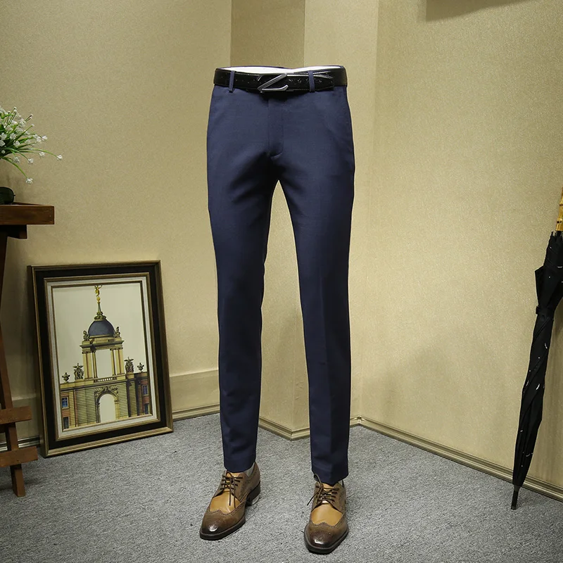 Отзывы о Мужские Длинные Формальные Брюки для молодых людей Осень-зима синий костюм брюки