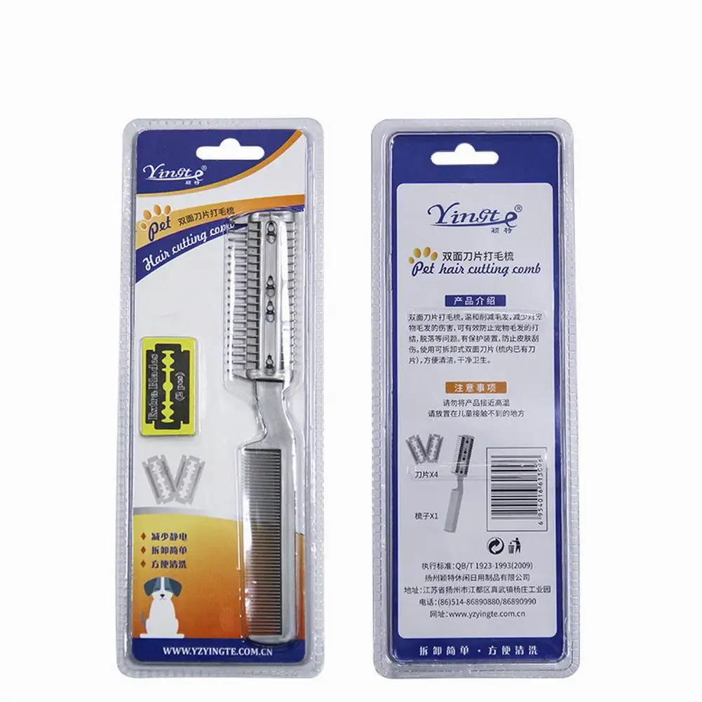 Триммер для волос для домашних собак, расческа для стрижки с 2 лезвиями, для стрижки, прореживания шерсти, для собак, кошек, расчески для удаления волос