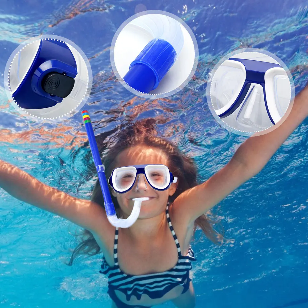 * 1. Регулируемый Детский Набор для плавания: Детский комплект для плавания, костюм для детей 4 - 8 лет. Есть две черные пряжки на боковой стороне маски для плавания, чтобы зафиксировать длину ремня. Вы можете настроить размер в соответствии с окружностью головы ребенка. * 2. Удобное и безопасное снаряжение для снорклинга: материалы этого набора для снорклинга являются гибкими и прочными, долговечными и качественными изделиями. Пищевой силиконовый мундштук также удобен в течение длительного периода времени, без усталости челюсти и какого-либо специфического запаха. * 3. Идеально подходит и не протекает: отрегулируйте эластичный силиконовый ремешок, чтобы плотно прилегать, и Улучшенная маска хорошо подходит для различных форм лица, включая возраст от 4 до 8 лет. Эта маска имеет очень мягкую жидкую силиконовую юбку, уменьшает давление воды на лицо, хорошо запечатывает на лице, не беспокоясь о утечке воды. * 4. Нет запотевания и Супер Прозрачность: кристально чистое закаленное стекло для объектива маски было анти-туман лечение, чтобы помочь вам увидеть самые маленькие вещи в воде. Устойчивая к царапинам линза предотвращает случайные царапины и остается высокой четкостью. * 5. Когда ребенка просят использовать его, Хранитель должен использовать его, когда он находится рядом.