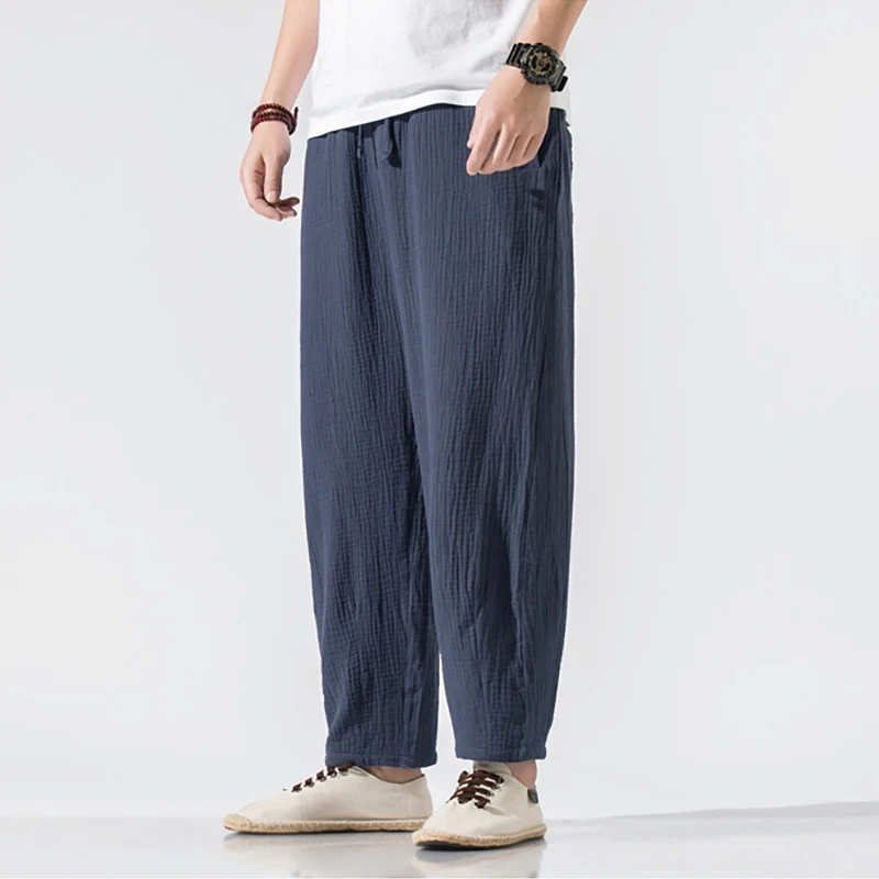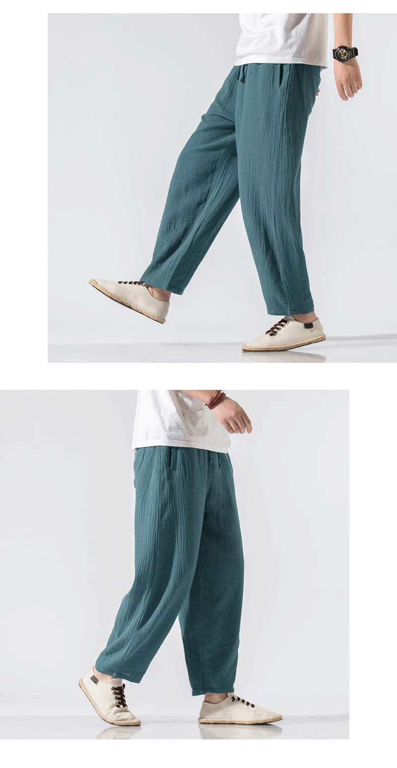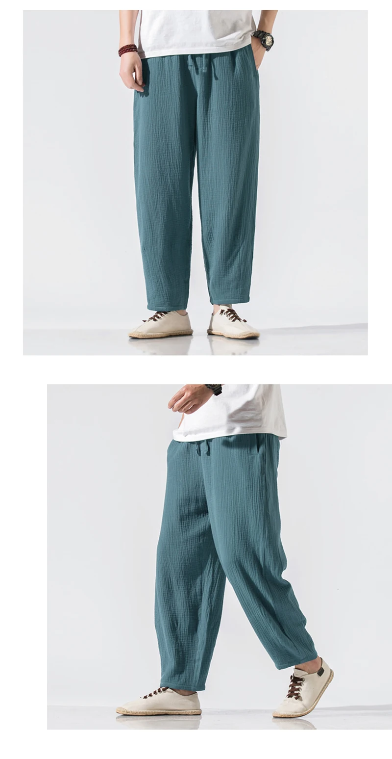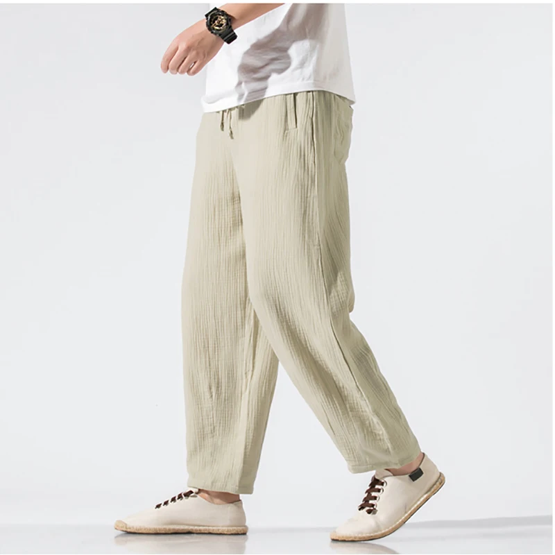 Льняные брюки для мужчин, однотонные повседневные мужские летние тонкие свободные повседневные штаны в китайском стиле, мужские Модные шаровары, новая модель 2020 года