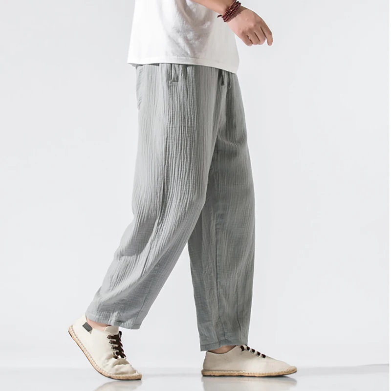 Отзывы о Льняные брюки для мужчин однотонные повседневные мужские летние тонкие