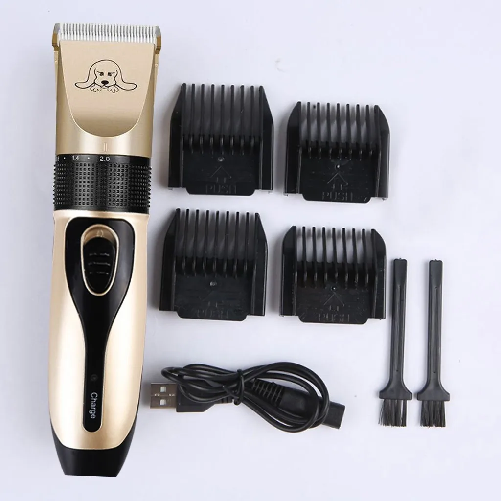 1 Бритва для собак,1xУпаковочная коробка,1xUSB, 1xЧистящая Щетка, 4 предельных гребня