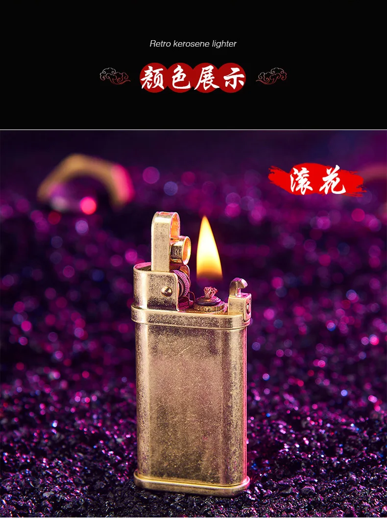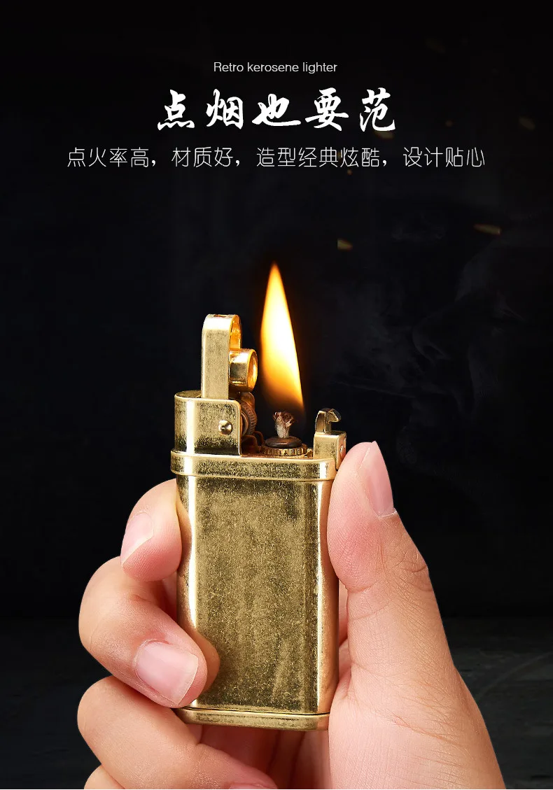 Латунная безкремневая зажигалка, ретро фонарь, шлифовальный круг, керосиновая бензиновая труба, зажигалка, масло для сигарет, ветронепроницаемые гаджеты для мужчин