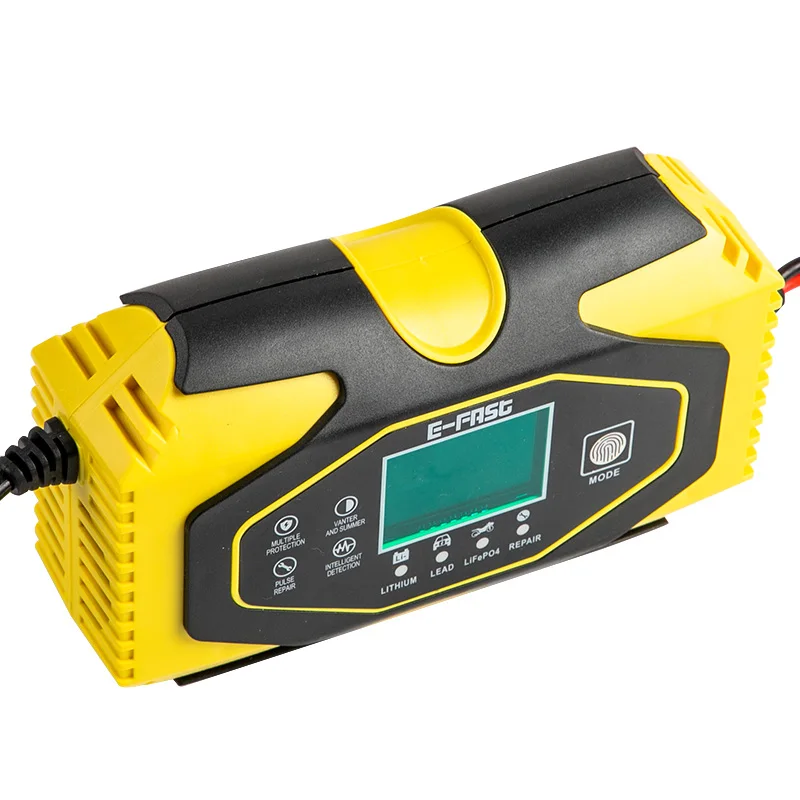 • Управление микропроцессором (ЦП). • 7 штук этап автоматический индикация во время зарядки: • Это полностью автоматическое зарядное устройство с 7 этапами зарядки. • Автоматическая зарядка предотвращает перезарядку аккумулятора. Таким образом, вы можете подключить зарядное устройство к батарее на неопределенный срок. • Зарядное устройство уровня 7 подходит для большинства типов батарей, включая кальций, гель и AGM, влажные батареи. Они также могут помочь восстановить истощенные и сульфированные батареи. • Тип батареи: большинство типов свинцово-кислотных аккумуляторов, включая кальций, гель и AGM, влажные, EFB и т. Д. • Технология режима переключения: Да • Защита полярности: Да • Защита от короткого замыкания на выходе: Да • Защита от соединения без аккумулятора: Да • Защита от перенапряжения: Да • Защита от перегрева: Да • Вентилятор охлаждения • Входное напряжение: 100-240 В переменного тока, 50-60 Гц • Номинальная мощность: 12V 6A 24V 3A • Минимальная Пусковое напряжение: 8,0 V • Диапазон батарей: 6-120 Ач • Тепловая защита: 65'C +/- 5'C • Эффективность: применение. 85%. • Соответствие стандартам: CB, CE, IEC60335, EN61000, EN55014 • Размеры (L×W×H): 160 × 100 × 55 мм • Вес: 450 г