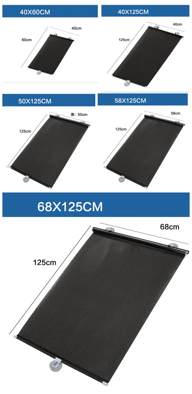 Элегантный внешний вид и практичный дизайн с закатывающимся дизайномЦвет:Серебристый, черныйРазмер:40*60 см, 40*125 см, 45*125 см, 50*125 см, 58*125 см,Упаковка включает: 1 шт. x солнцезащитный козырек для окна автомобиля