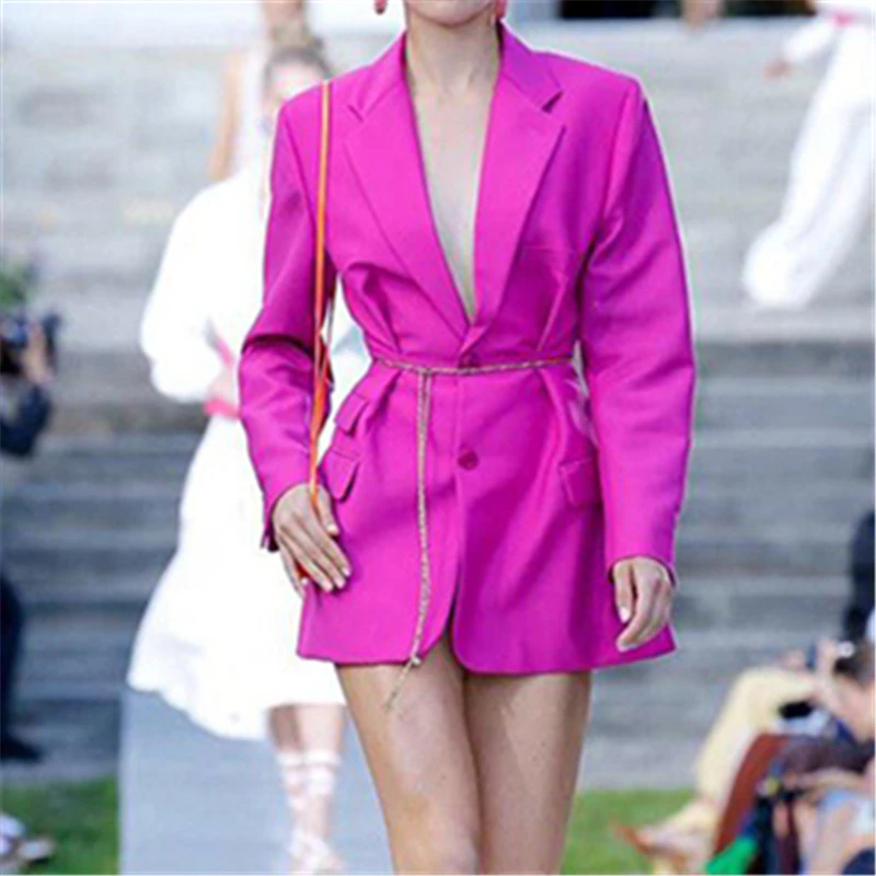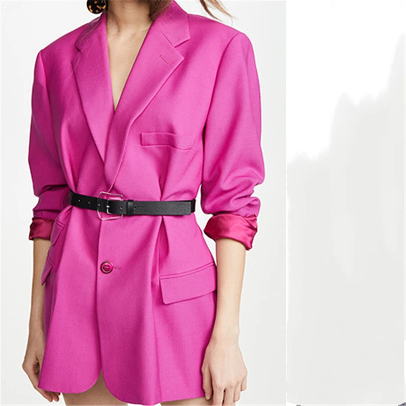 Отзывы о Spring Autumn 2020 Women Rose Red Pleated Split Temperament Blazer New Lapel Long Sleeve Loose Fit Jacket Fashion | Женская одежда