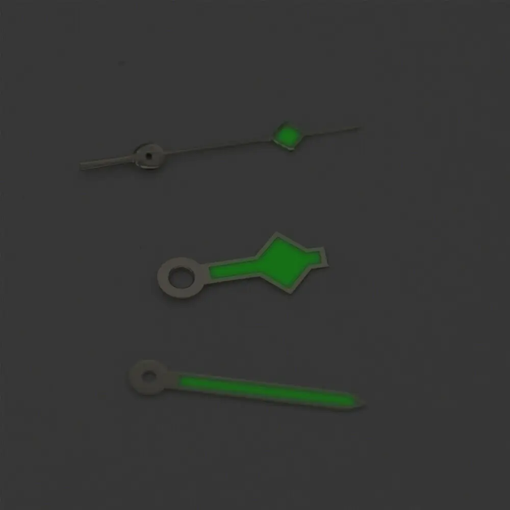 Color: As showed white /rosegold Bright: yes, green Format: 13.5 millimeters x 13mm x 9mm (All measured from center of hole to end) Movement: suitable for NH35 36 ETA 2836 2834 2824 Miyota 8215 821A movement