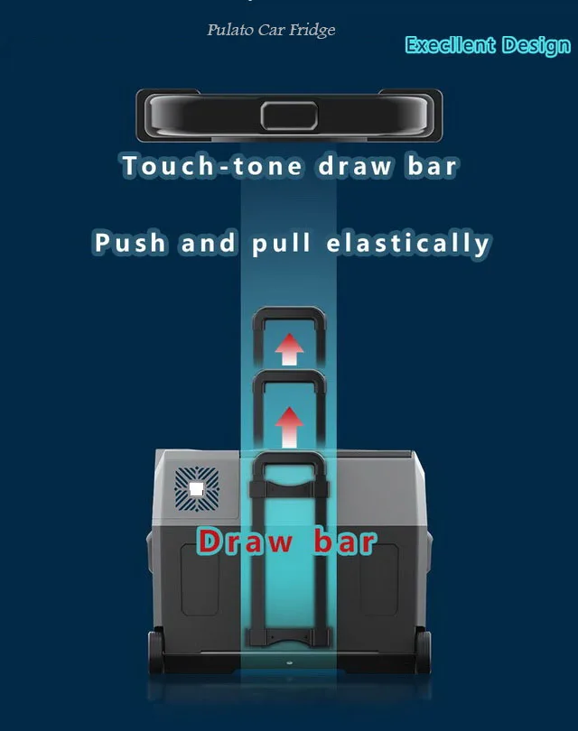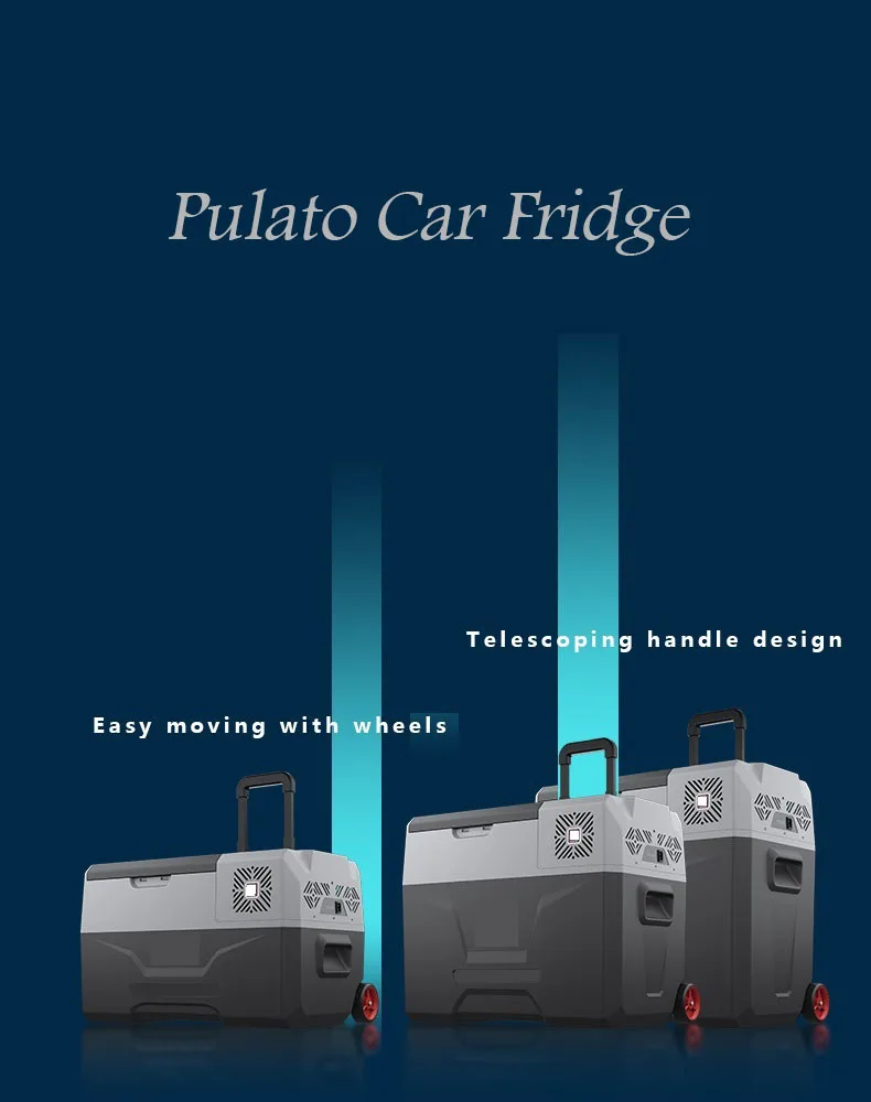 1. Материал: АБС-пластик, Пенополиуретан 2. Температура: от-20 ℃ до 20 ℃ 3. Компрессорный холодильник 4. Интеллектуальный цифровой экран 5. Анти-вибрация 6. Размеры: 59*38*48 см 7. Вес нетто: 13 кг 8. Мощность: 50 Вт 9. С ручкой и колесами