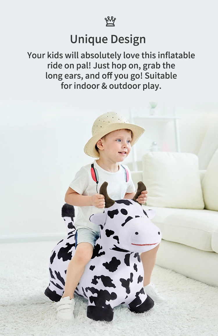 Высокое качество: Соответствует требованиям безопасности. Nflatable hopper со съемным плюшевым покрытием безопасно и весело для ваших детей. Легкая надувание: выньте вставленный белый воздушный затвор из воздушного отверстия; Вставьте наконечник воздушного насоса и надуйте Хоппер, пока крышка не будет натянута вокруг игрушки, затем быстро вставьте воздушный затвор обратно в отверстие для воздуха. Время выпустить животных! Вашим детям будет очень нравится эта надувная езда на pal! Просто Прыгай, хватай длинные уши и уходи! Подходит для игр в помещении и на открытом воздухе. Идея подарка: надувная езда на корове-Отличный подарок на день рождения или Рождественский подарок для детей унисекс, младенцев, малышей и дошкольников.