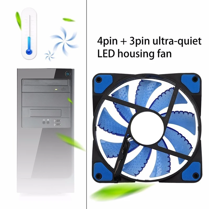4pin + 3pin Ультра тихий светодиодный чехол вентилятор. С 15 светодиодный подсветкой. Подключение к источнику питания или материнской плате.