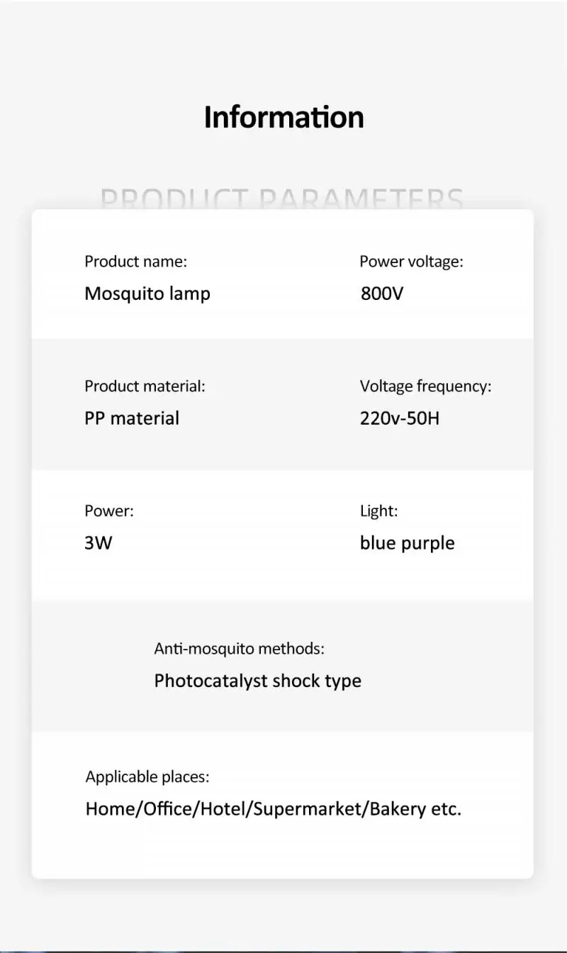 1. Этот продукт может использоваться в спален, гостиных, погода, рестораны, гостиницы, офисы, куриное яйцо, оборудование для животноводства, а также в других местах комары должны быть убил.