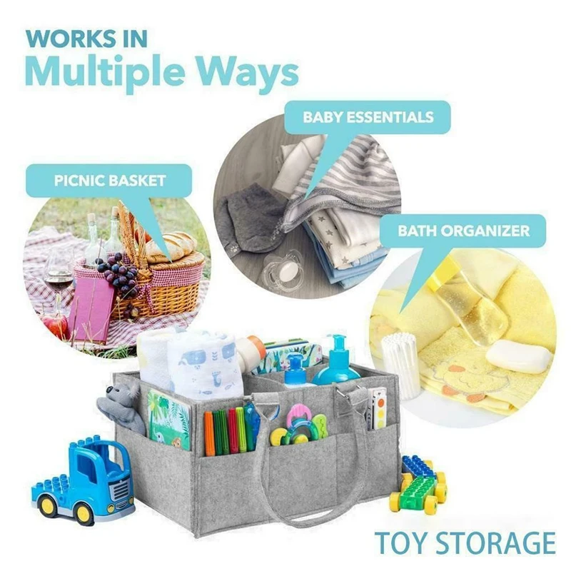 Портативный и прочный: войлочный органайзер для подгузников можно легко сложить, не занимать больше места. Большая емкость помогает матери, которая держит детскую вещь как можно больше. Хороший органайзер для путешествий для мам и детей.