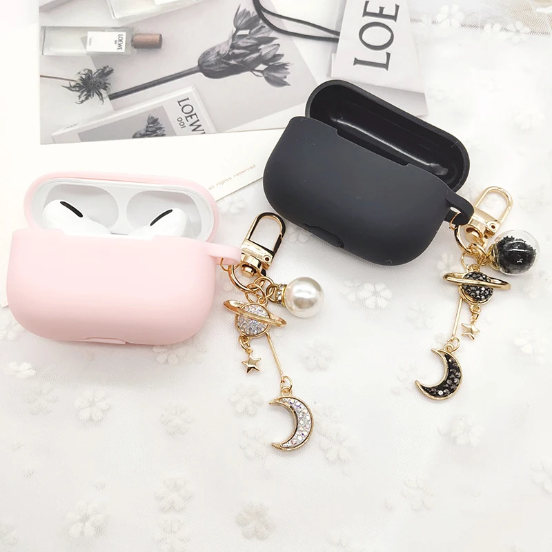 Отзывы о Роскошный силиконовый чехол для наушников Diamond Moon брелок ключей Планета Apple AirPods
