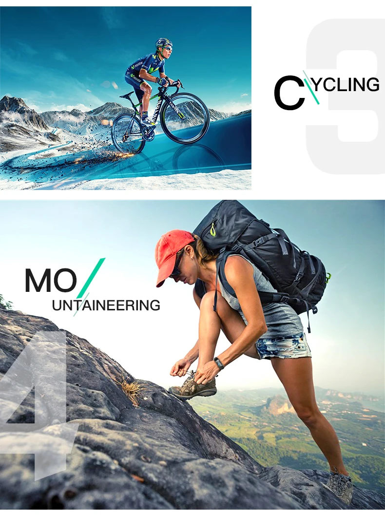2. Различные виды спорта, такие как езда, прогулки, бег, альпинизм. Запись шагомера, сожженных калорий, отслеживание расстояния. Подробности можно прочитать в приложении.