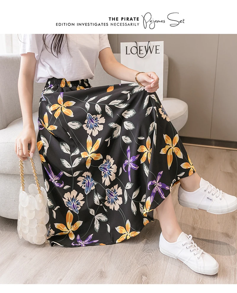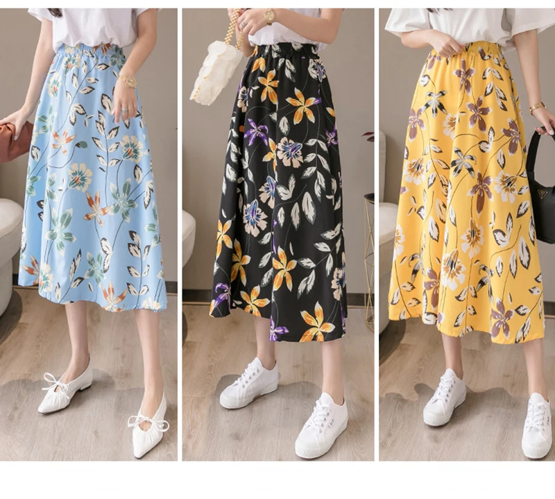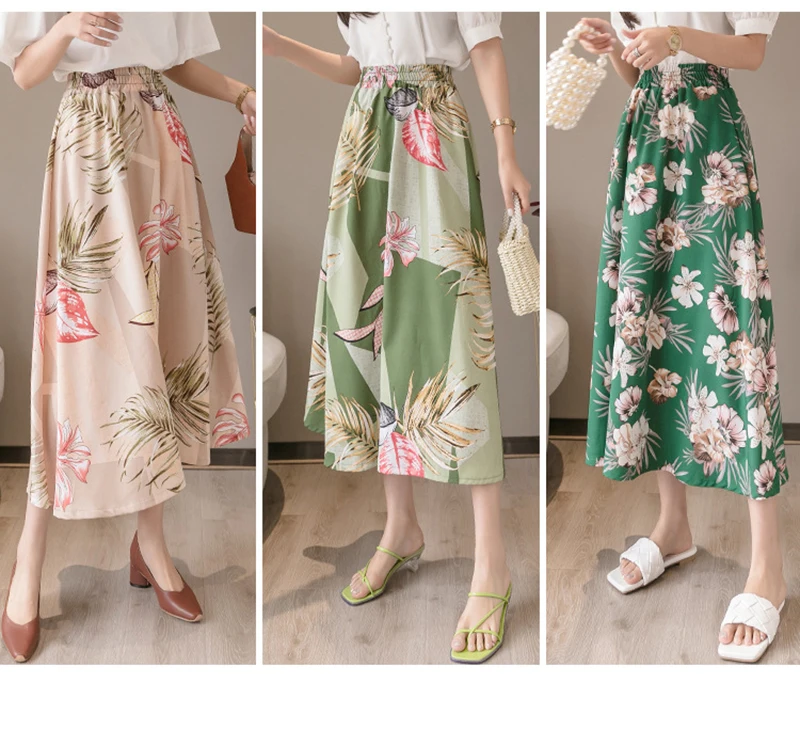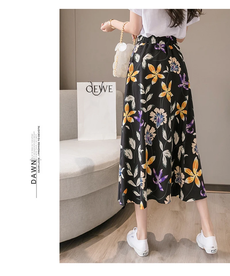NEEDBO, юбка миди для женщин, для отдыха, Пляжная, бохо, юбка, летняя, миди, юбка, цветочный принт, элегантная, шифоновая, юбки для женщин, Faldas Mujer