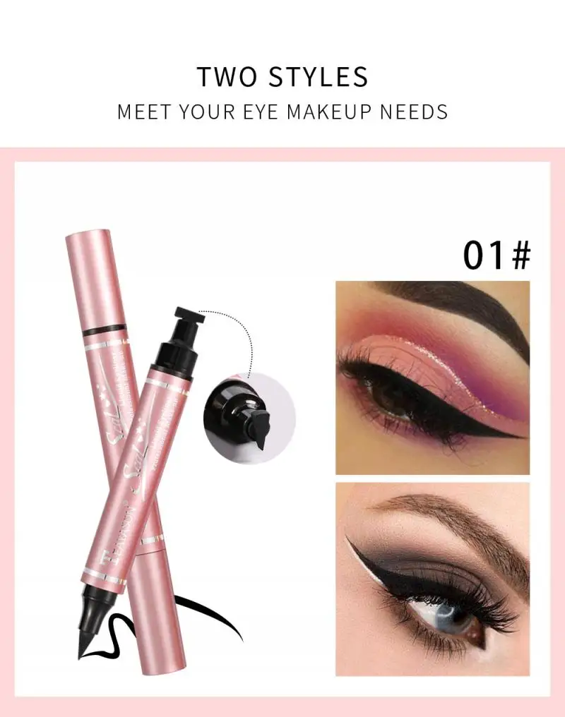 Одна сторона-кисть для подводки глаз, а другая-штамп для подводки глаз, который легко создает уникальную подводку для глаз.