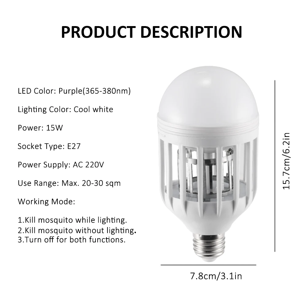 Отзывы о AC 220V Электронный москитный убийца лампа E27 15W светодиодный светильник лампы