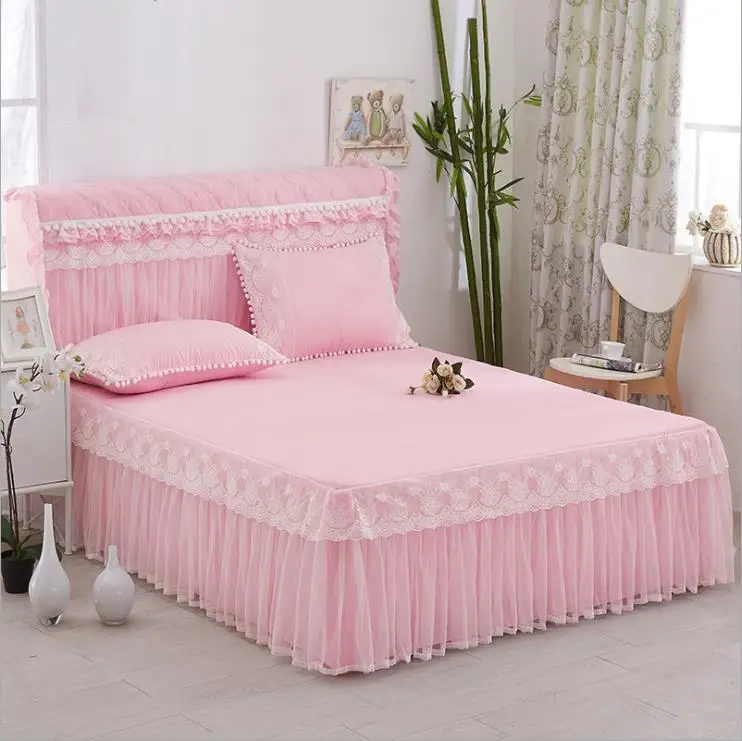 Отзывы о Розовая Корейская кружевная кровать покрывало на матрас комплект эластичная