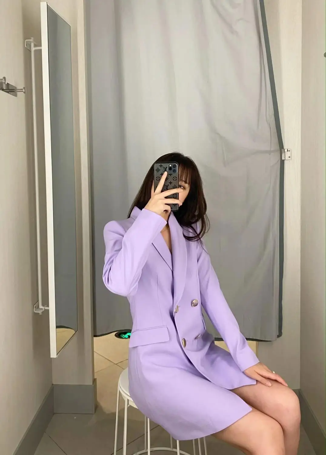 Отзывы о Увядший блейзер в английском стиле ins двубортный ретро лавандового цвета Женский