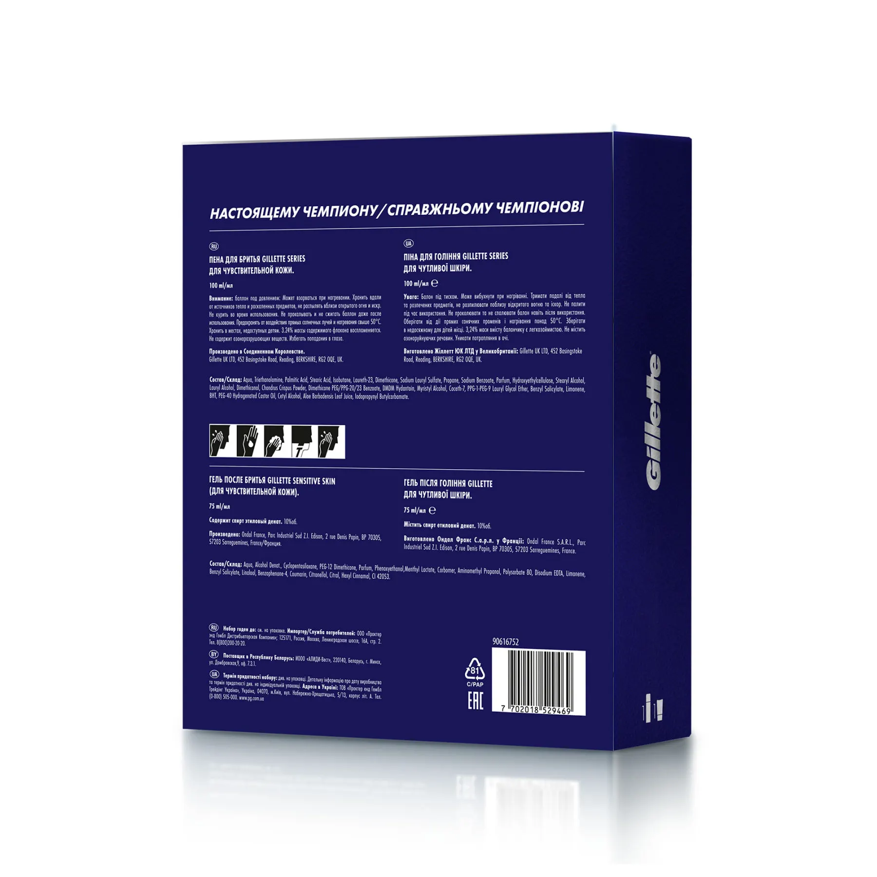 Сделайте ему подарок, который он оценит: подарочный набор Gillette! В набор входят пена для бритья Gillette Series для чувствительной кожи и гель после бритья Gillette Series, которые обеспечат невероятное ощущение комфорта во время и после бритья.