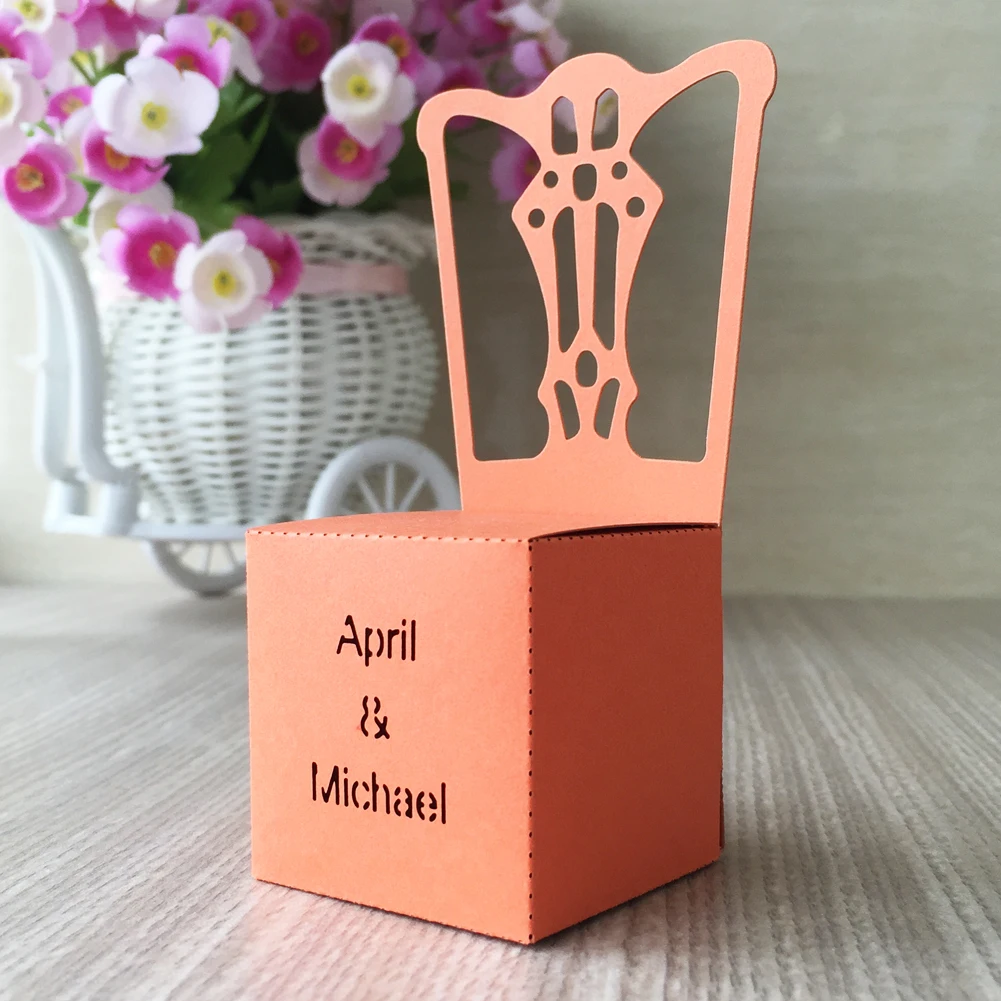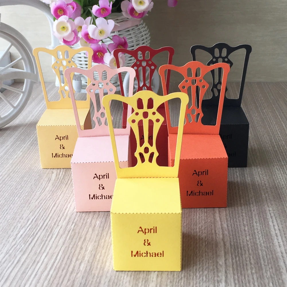 100 шт настраиваемая 3D конфетная коробка с узором для стула, элегантная конфетная коробка для свадьбы, милая сумка, свадебный подарок