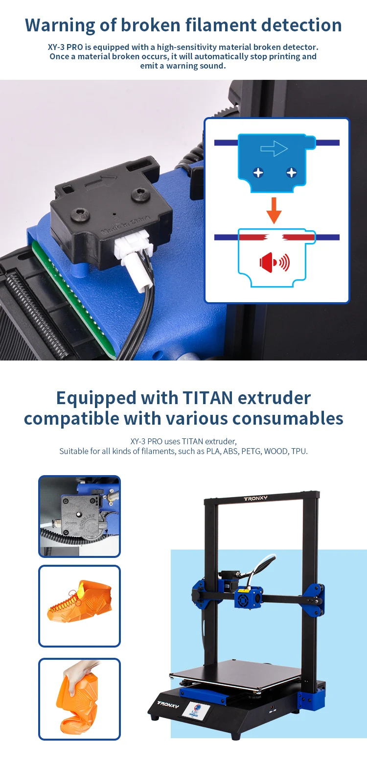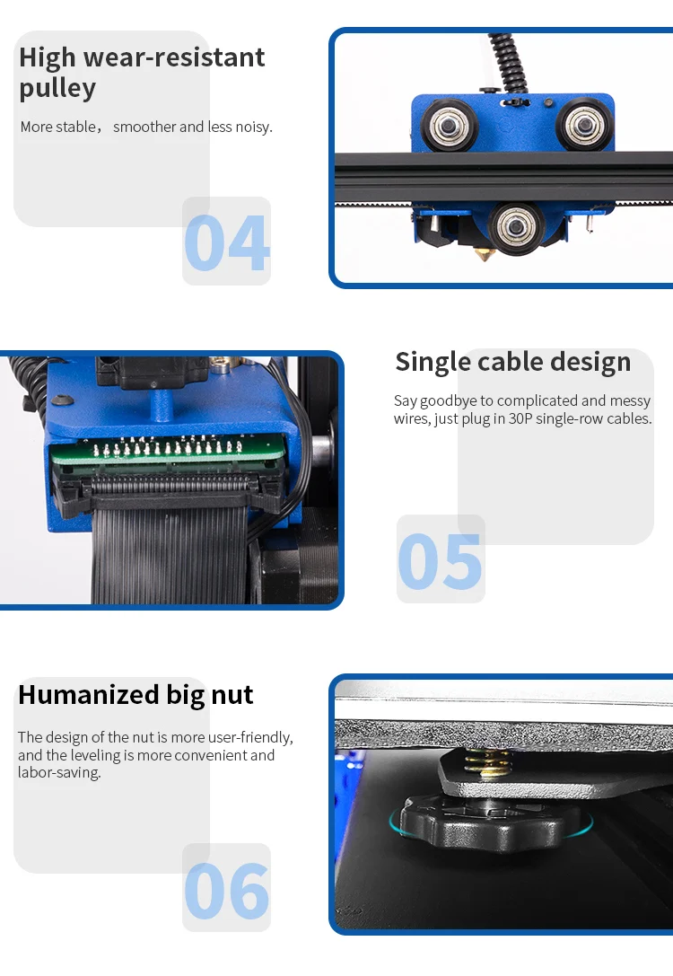 Название бренда: Tronxy Номер модели: XY-3 PRO Сертификация CE: Да Fliament: PLA,ABS,HIPS,TPU,PVC и так далее Сопло Диаметр: 0,4 Программное обеспечение ломтика: CURA/Repetiter-Host/TRONXY Расходные материалы для Диаметр: 1,75 мм Точность: 0,05 Толщина ломтика: 0,1 мм-0,4 мм Автоматическое выравнивание: нет Напряжение: 110-220 В Скорость цветной печати: 20-150 мм/с Максимальный размер печати: 300*300*400 мм Операционная система: WINDOWS/MACOS/LINUX Формат файла: STL.OBJ.DAE.AMF.G-CODE Технология формования: FDM Поддержка: сенсорный экран и автоматическое выравнивание Мощность питания: 110/220V 24V Температура сопла: Макс 275 ℃ Сбой питания: Да Детектор износа нити: Да Подключение: USB и amp; Sd-карта Экструдер Titan: гибкие нити Модернизированные направляющие принтеры: более высокая точность Точность позиционирования: X/Y: 0,0125 мм, Z: 0,02 мм Материал машины: алюминий, металл Размер машины: 48,5*48,2*64,3 см Размер упаковки: 70*54*21 см