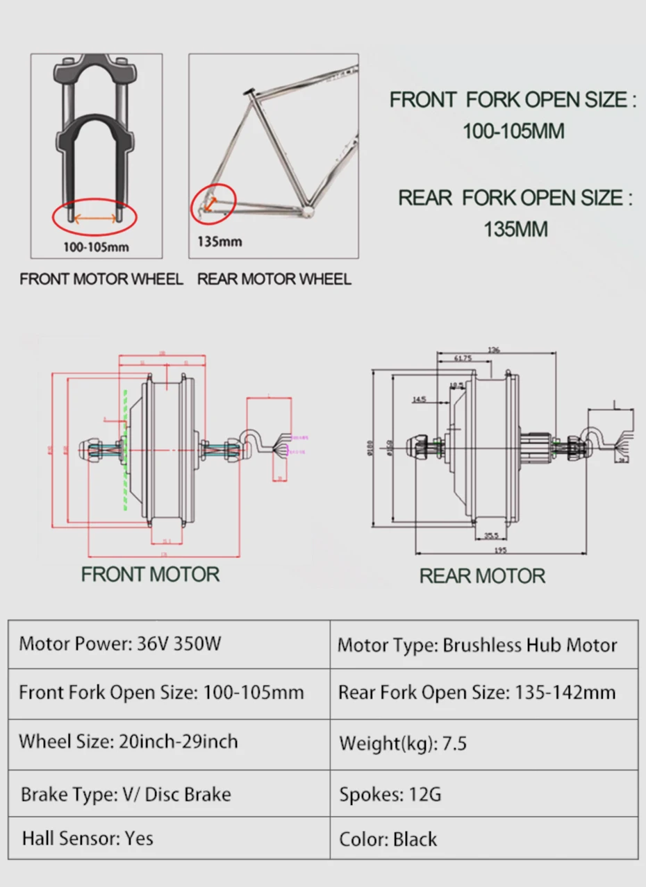 . Легкая Конвертация, набор для переоборудования велосипеда «сделай сам» на переднее колесо с выпадающим размером «100-105 мм». Легко превратите педальный велосипед в моторизованный велосипед в течение 1 часа. . Система стабильного привода, этот двигатель с передним приводом, который совместим с дисковым тормозом и V-тормозом, имеет номинальную мощность 250 Вт/350 Вт/500 Вт, обеспечивает идеальную мощность для транспортных средств. Мощный и эффективный двигатель значительно повышает комфорт при езде и подходит для туристических велосипедов, пригородных и горных велосипедов. . Супер экономичность, скорость до 38-40 кмч, 50нм, эффективность ≥ 80%; Тормозные рычаги безопасно отключают питание от мотора. . В комплекте аксессуары, поставляется со всеми необходимыми аксессуарами. Переднее колесо и двигатель, контроллер, уровень тормоза, дроссельная заслонка большого пальца (дополнительно), чехол контроллера, СВЕТОДИОДНЫЙ/ЖК-дисплей, кабель двигателя, PAS, водонепроницаемый основной кабель светодиодный светильник ка.