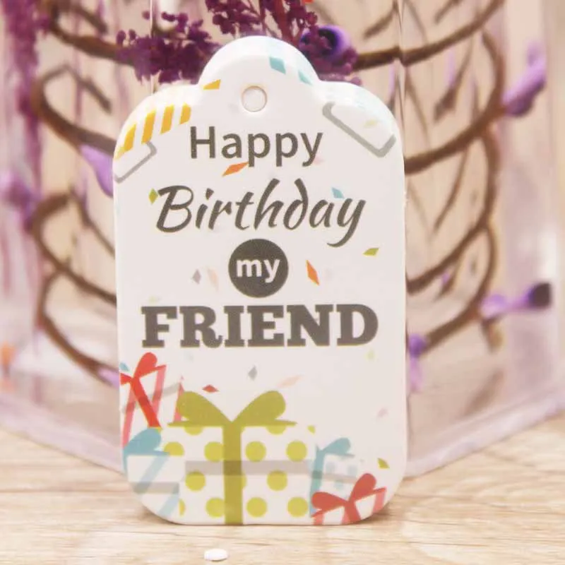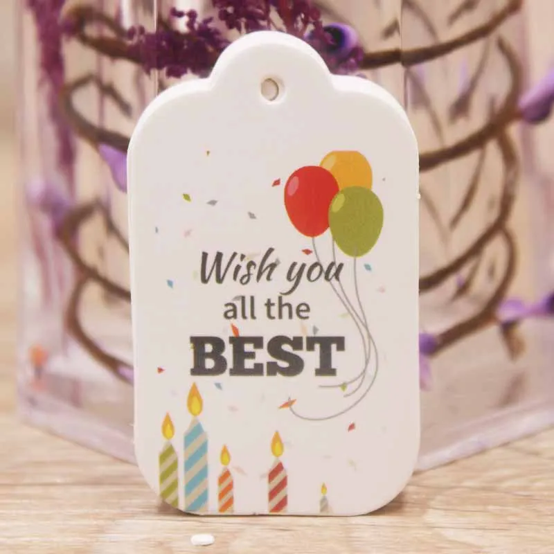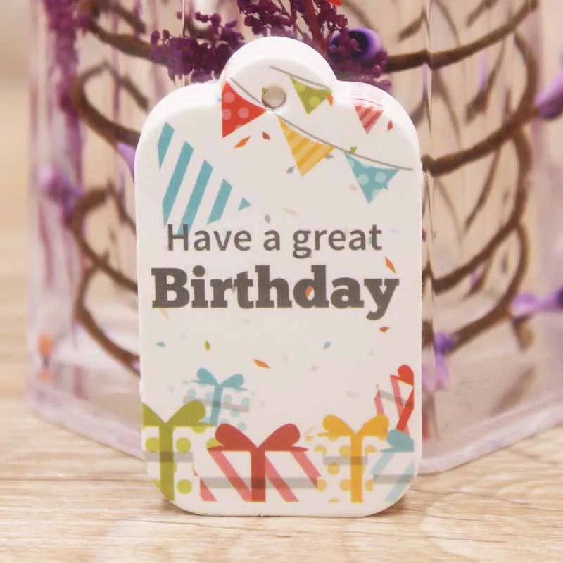 100 шт. белая картонная этикетка на день рождения, Подарочная бирка с принтом карт, бумага с надписью на день рождения, оптовая продажаПохожие товары