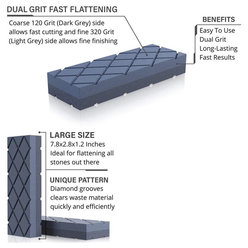 Важно поддерживать ровный и ровный точильный камень или водный камень, чтобы иметь возможность равномерно затачивать ножи для достижения максимальной производительности. Двойная зернистая поверхность нашего уплотнительный камень разработан, чтобы точно отремонтировать и выровнять ваш белый камень в течение короткого периода времени.