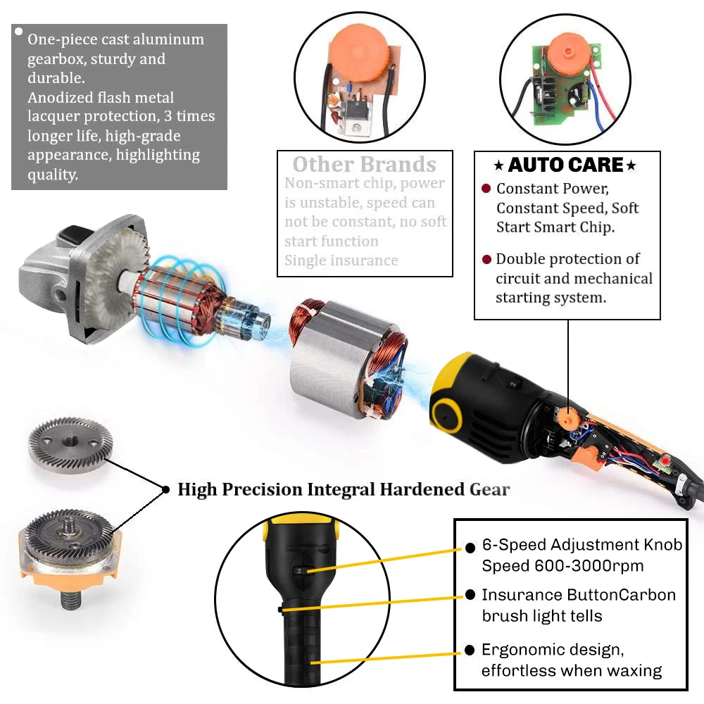 · Дизайн M-8 нить удобно устанавливать в самоклеющиеся диск. · Портативная и нескользящая ручка, делает весь процесс без слепого угла. · Регулируемая скорость, может быть отрегулирована для удовлетворения различных потребностей. · Низкий уровень шума, бесшумное шлифование. · Длинный кабель, который может решить большинство проблем. Ручка может быть установлена как с левой, так и с правой стороны для легкого использования левой и правой рукой Эта полировальная машина не только подходит для автомобилей, но и отлично подходит для домашнего использования, например, для восковой обработки пола, удаления накипи, обработки мебели, полировки нефрита и т. д.