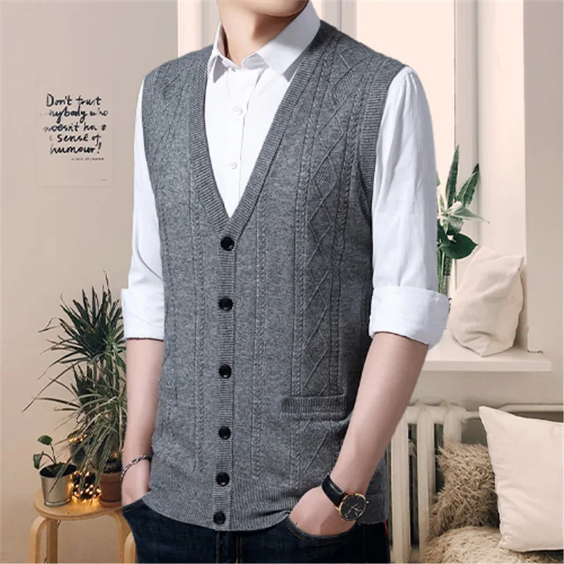Отзывы о Мужской шерстяной жилет однотонный просторный свитер с v-образным вырезом и