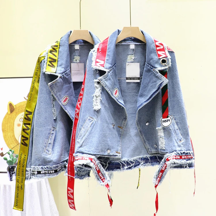 Отзывы о Женская джинсовая куртка в стиле Харадзюку демисезонная Асимметричная хип-хоп с