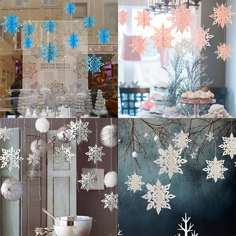 Эти полые снежинки очень светильник и простота использования, просто закрепите его с висячей строкой, чтобы все, что вы хотите, чтобы украсить легко.