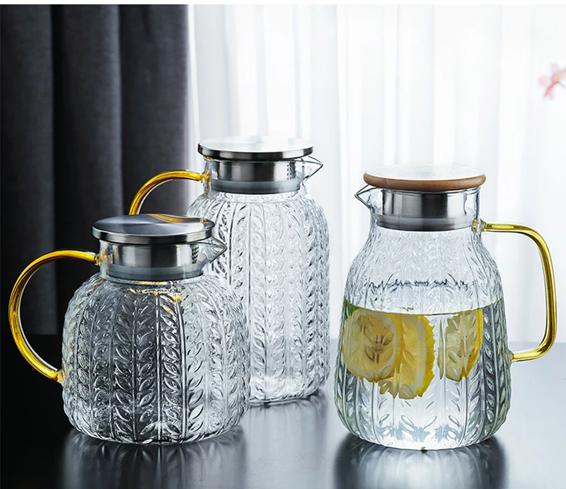 Отзывы о Стеклянный кувшин для воды креативный стеклянный чайник холодной с деревянной