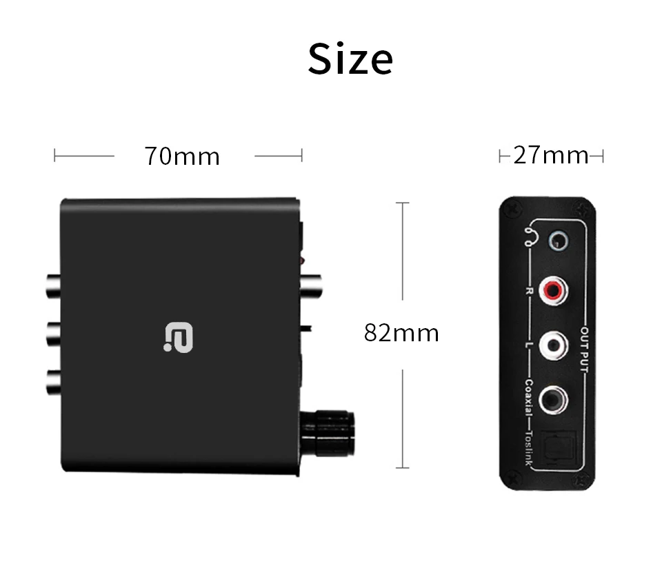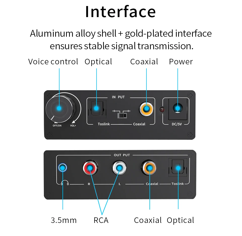 【Цифровой аналоговый преобразователь 】 этот преобразователь DAC преобразует коаксиальные или оптические цифровые аудиосигналы в аналоговый аудио L/R и может быть подключен к внешним устройствам, таким как усилители через стандартный разъем типа RCA, вы также можете выбрать 3,5 мм разъем для наушников Выход, соедините с высокой точностью наушники, он идеально подходит для домашнего или профессионального аудио-коммутации.