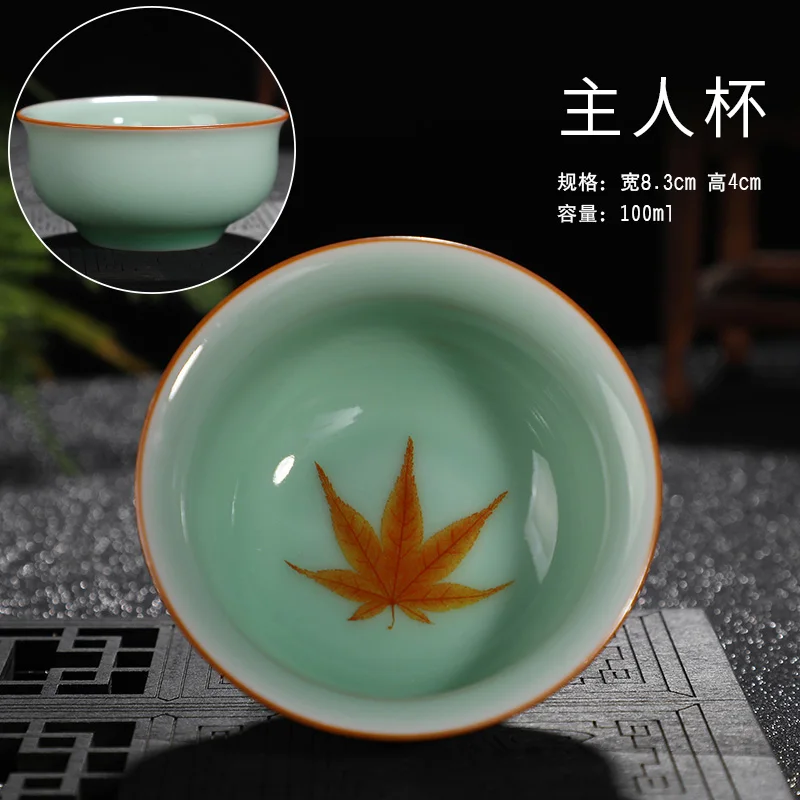 100 мл креативные чайные чашки с кленовыми листьями Celadon здоровые под остеклением нефритовые зеленые керамические чайные чашки с бабочкой набор для обжига температуры