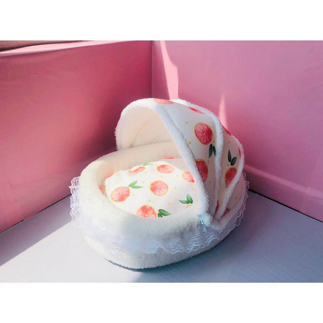 Отзывы о Кровать для кошки принцесса Милая Кружевная кровать питомца с фруктовым принтом
