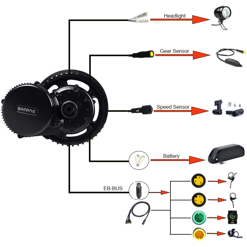 1. 8FUN новейшая версия BBS01B 250 Вт имеет два разъема для датчика переключения передач и светильник 6 в. (Примечание: В комплект мотора Bafang не входит светильник и датчик зубчатой передачи.) 2. Совместимость для большинства велосипедов, таких как горные велосипеды, складные велосипеды, коммутируемые велосипеды, городские велосипеды и т. д.