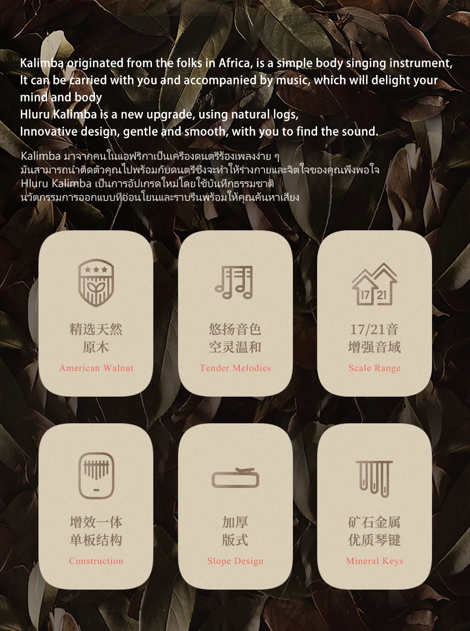 Калимба является музыкальным инструментом, родом из Африки. Теперь он также называется фортепиано большого пальца. Звук, который он производит во время игры, так расслабляет ум и тело. В отличие от некоторых музыкальных инструментов, калимба-это такой светильник, который вы можете переносить/доставлять куда угодно. Hluru Kalimba сделан из натурального дерева с инновационным дизайном и гладкой отделкой, что делает его нежным для ваших рук. (Ссылка на заказ: //kalimba.aliexpress.com)